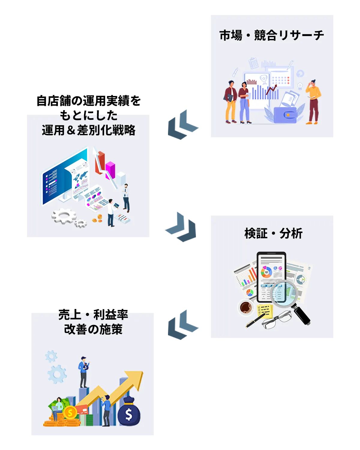 日々の売上の分析、改善、新たな施策の